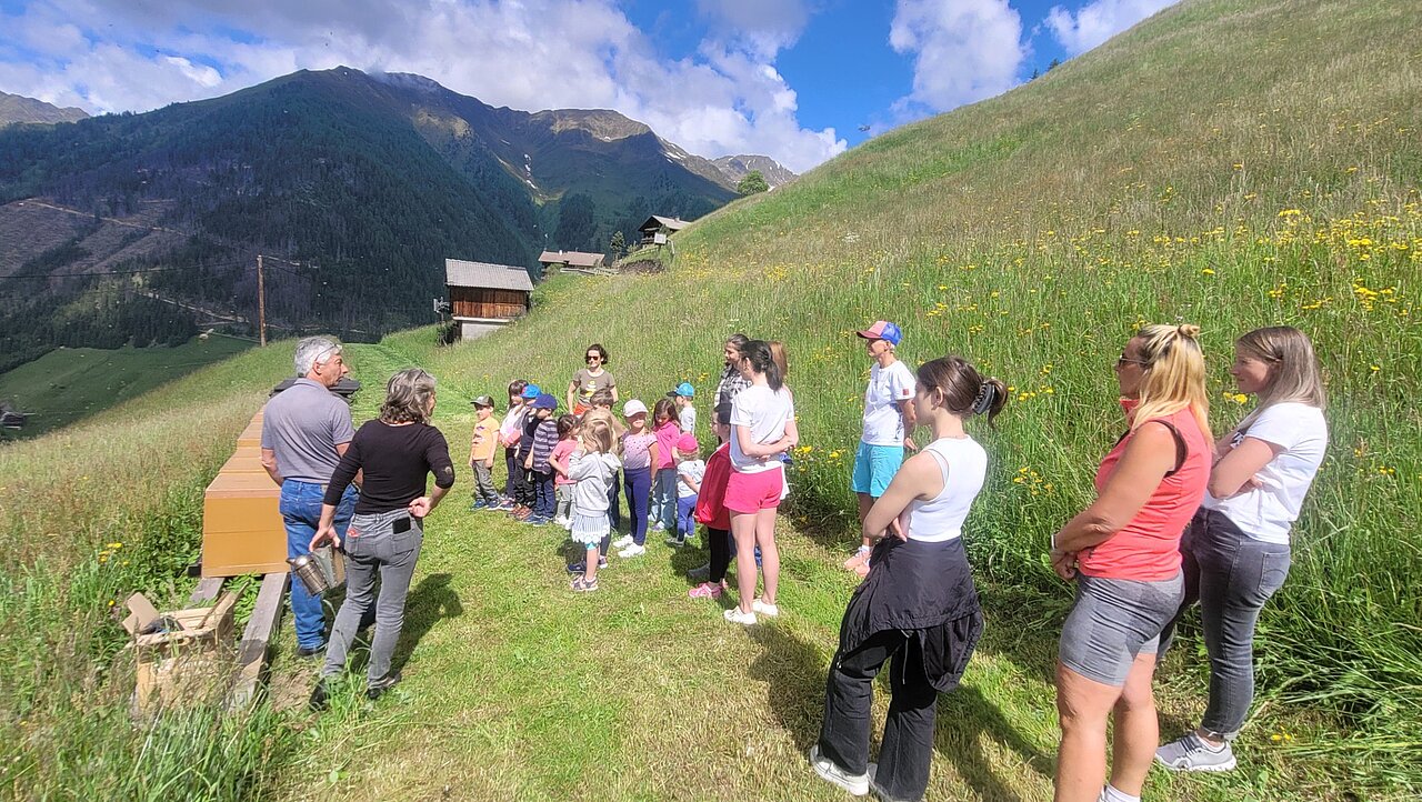 Neben der kleinen Berglandwirtschaft und der Vermietung betreuen wir noch eine Imkerei mit eigener Königinnenzucht. Mit den beiden Töchtern, Manuela und Theresa bewirtschaften wir ca. 150 Bienenvölker. Diese produzieren einen überaus leckeren und hochwertigen Honig aus dem Nektar von hauptsächlich Löwenzahn, Heidelbeere, Wald, Himbeere, Alpenrose und den vielfältig blühenden Bergwiesen. Somit ist unser Honig eine Mischung aus verschiedenen Blüten und Kräutern.
